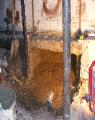 During the underpinning process, the piles and piers are built to extend to stable soil, or soil resistant to compacting